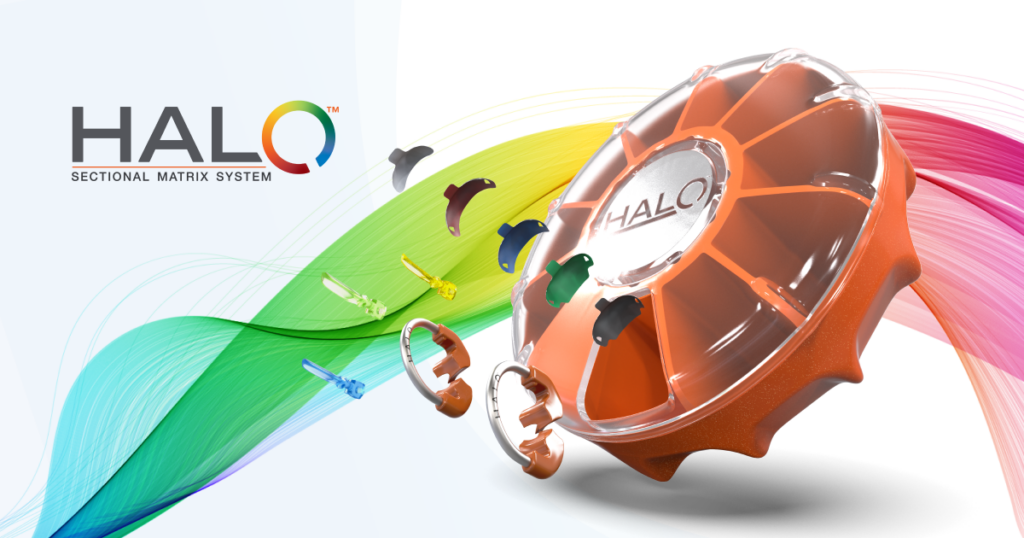 Ultradent Products is proud to introduce the innovative Halo™ system. This user-friendly sectional matrix system facilitates the creation of consistent, aesthetically pleasing, and anatomically precise composite restorations in a shorter timeframe. It includes all essential components, such as nitinol rings, stainless steel matrix bands, and plastic wedges. These high-quality components are designed to effectively address most clinical challenges related to posterior restorations and work seamlessly together.